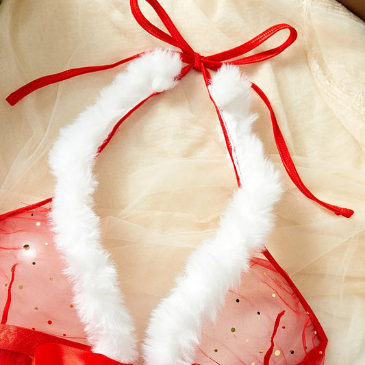 Semi-Transparent Sparkling Mesh Sexy Lingerie Christmas Nightdress Thong