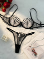 2-piece women's black scallop chest cup embroidered lingerie set, suitable for all seasons ZA825058